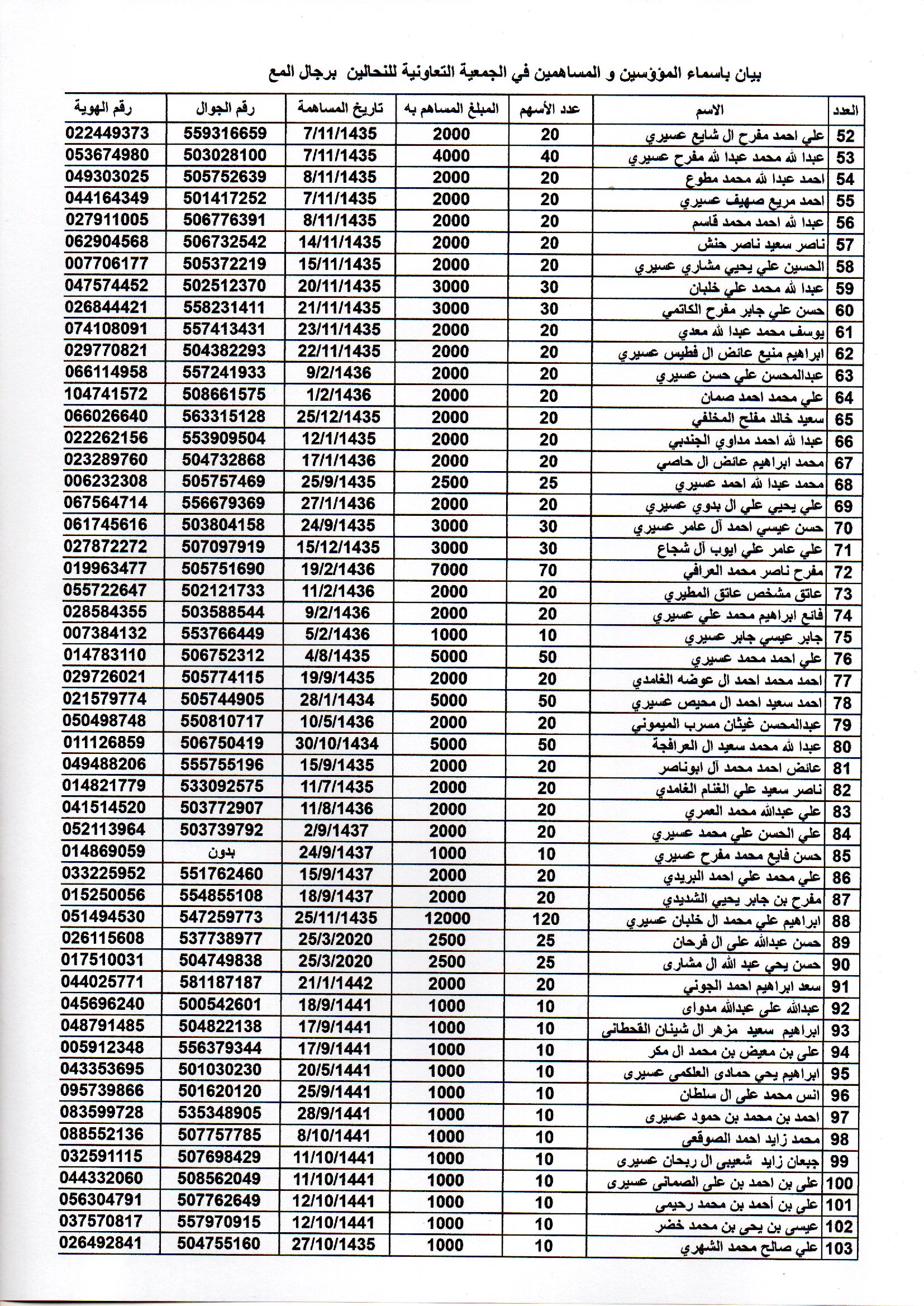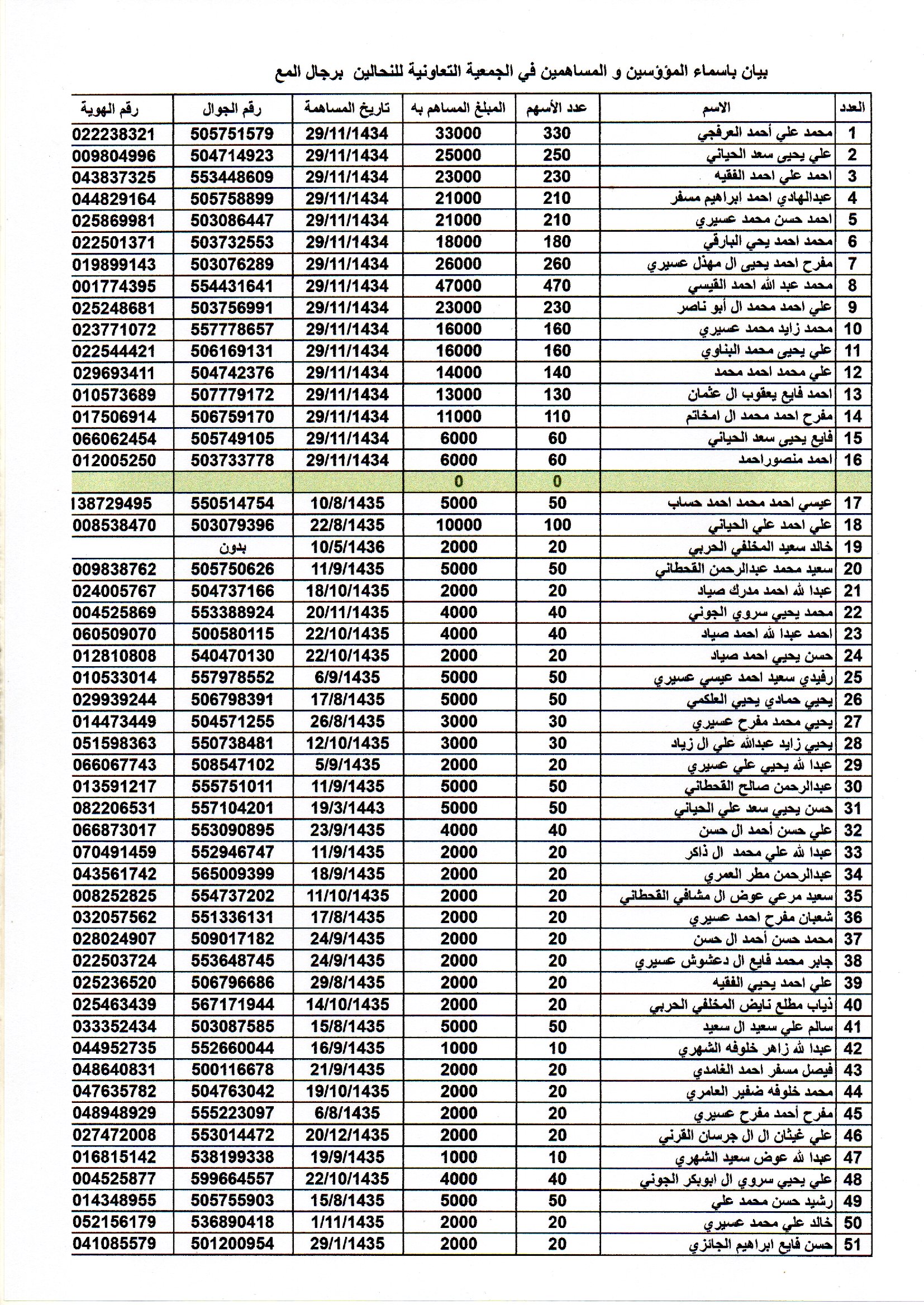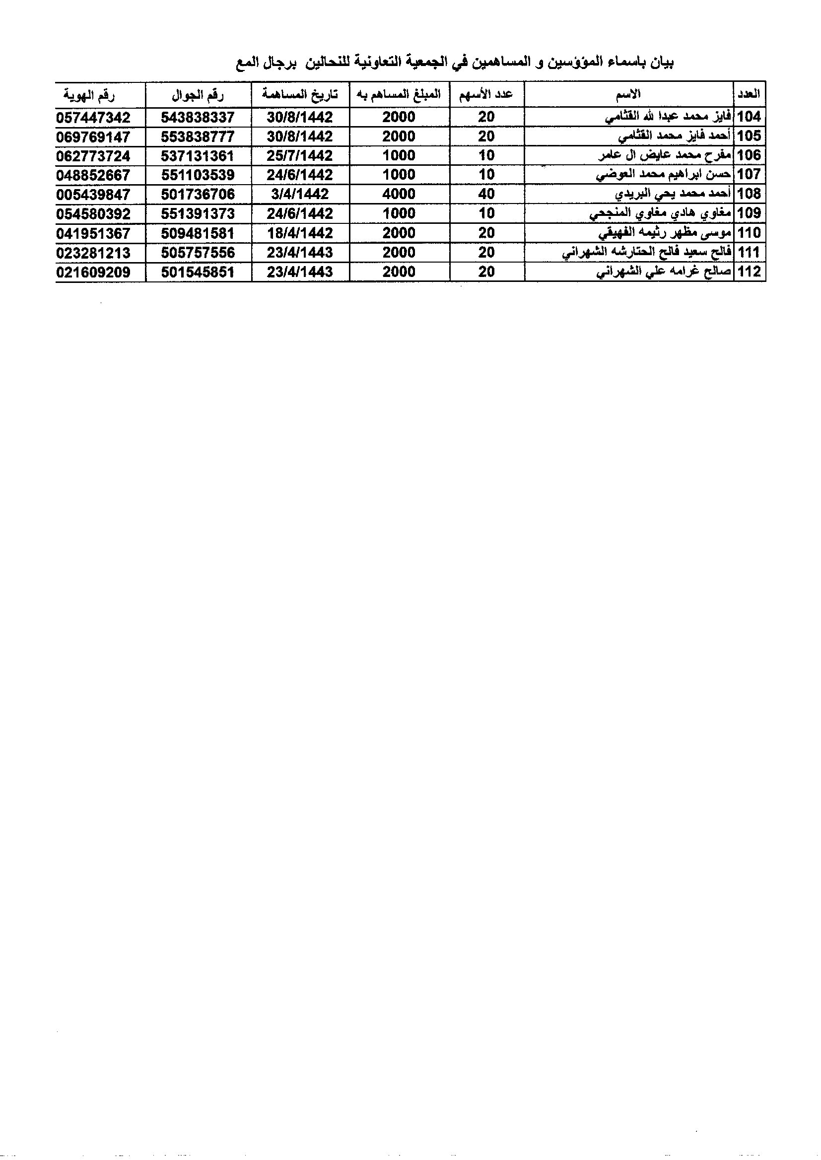 افتراضي اسماء الاعضاء المساهمين في الجمعية