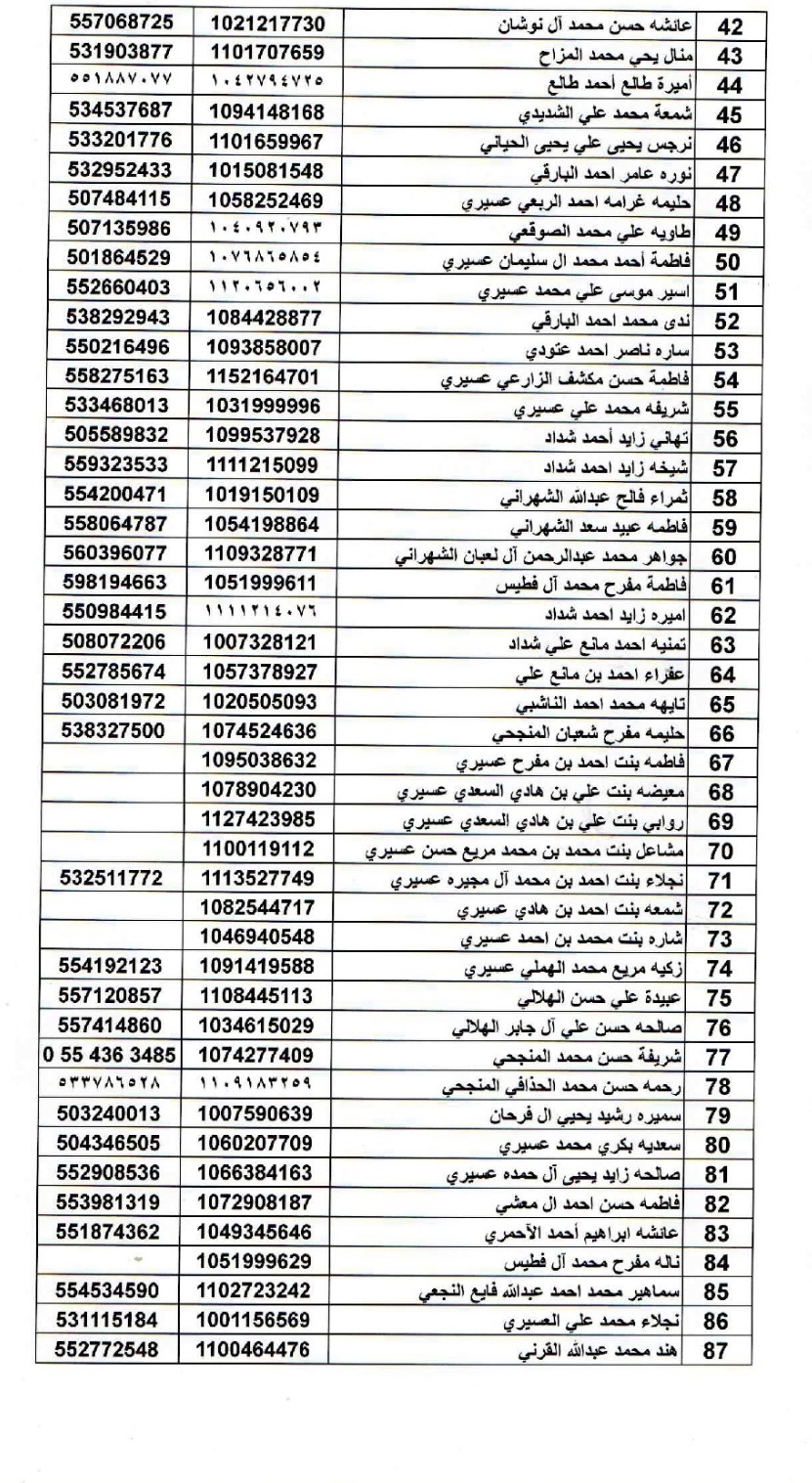 اسماء المتدربات في دورة اساسيات تربية النحل رقم 103