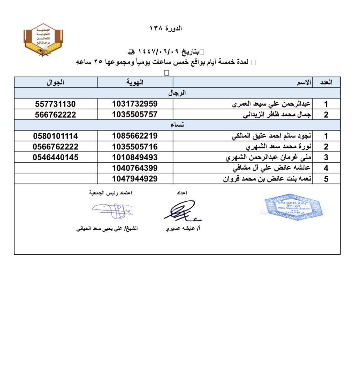 أسمآء المتدربين والمتدربات في دورة اساسيات تربية النحل رقم 138
