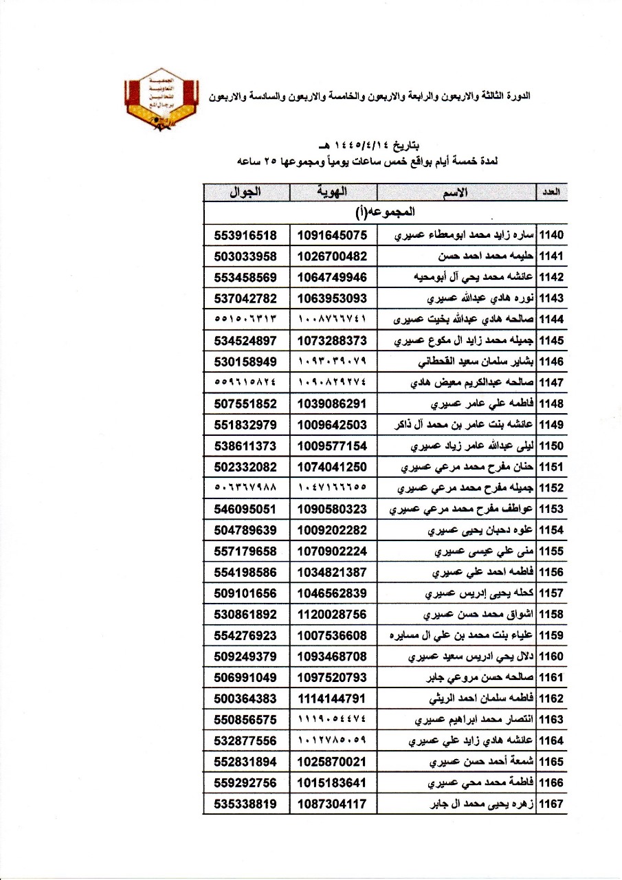 اسماء المتدربات في الدورة رقم (51 و 52) خلال الفترة من 14 الى 18 /4 / 1445هـ