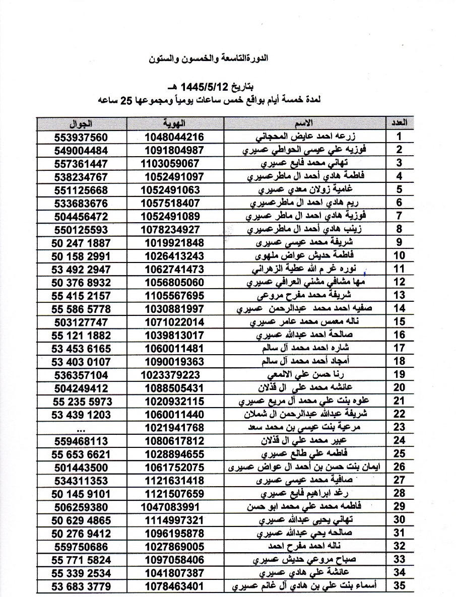 افتراضي أسماء المتدربات في دورة اساسيات تربية النحل رقم 59 و60