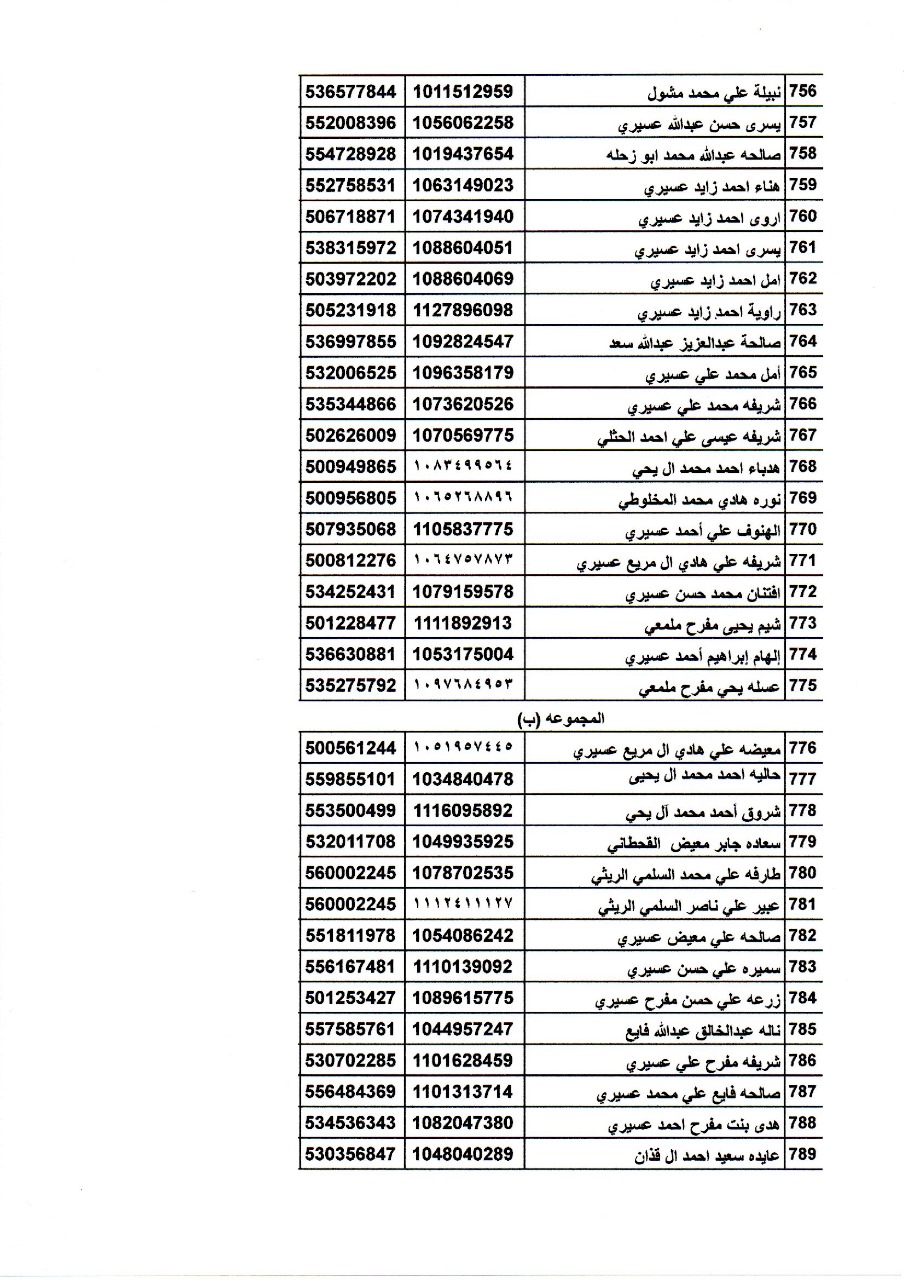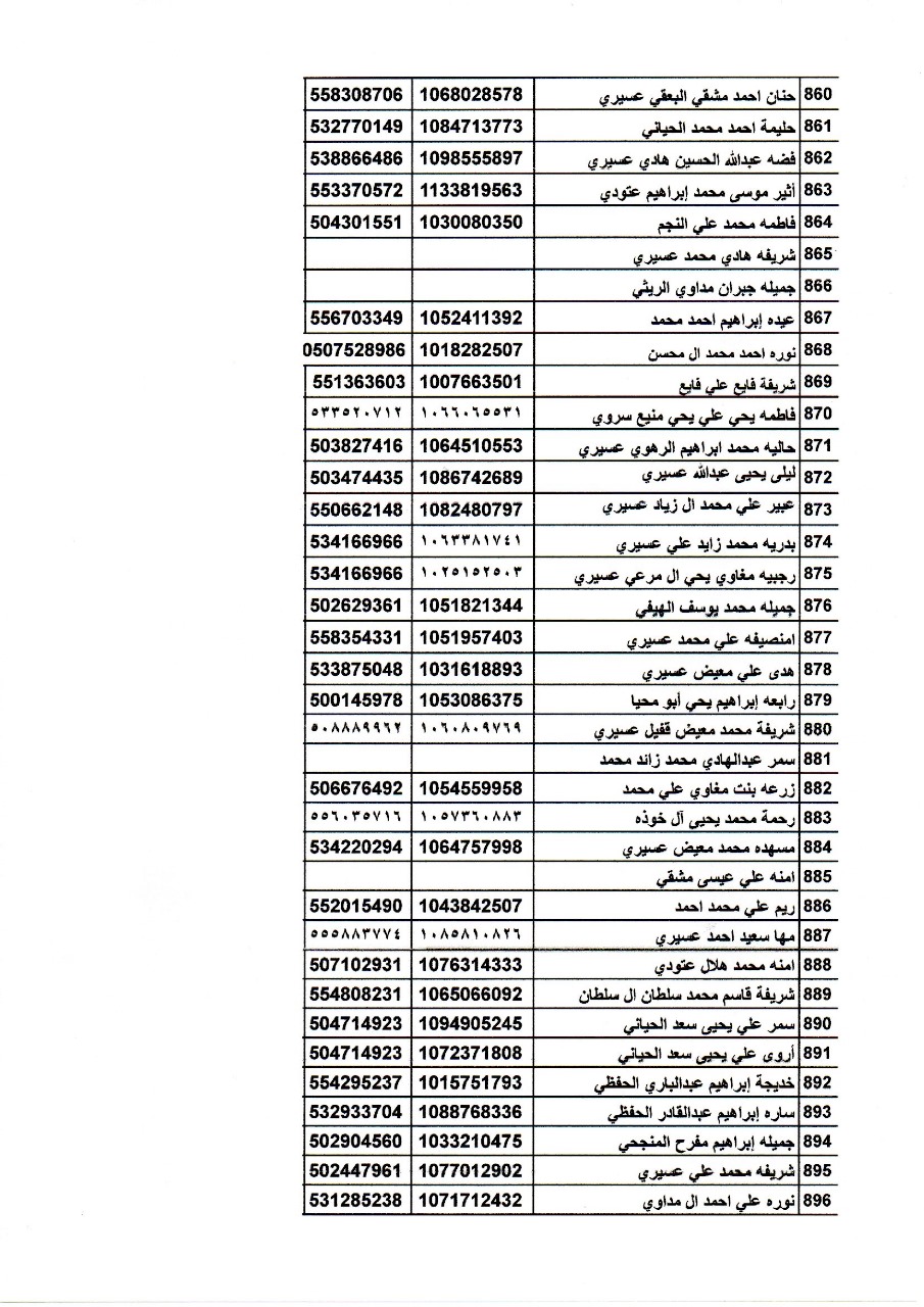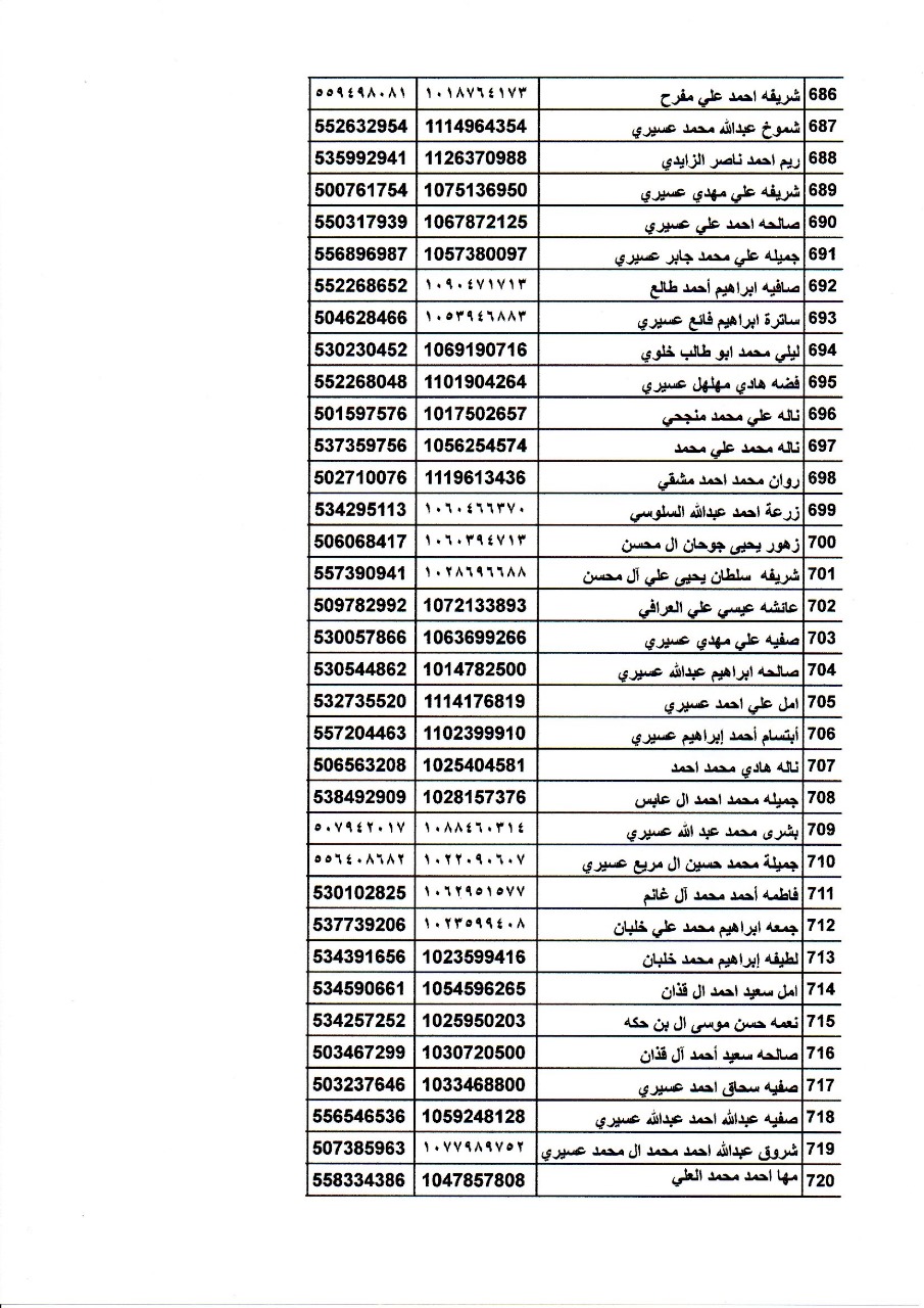 أسماء المتدربات في دورة اساسيات تربية النحل تحت اشراف فرع وزارة البيئة والمياه والزراعة بمنطقة عسير.
