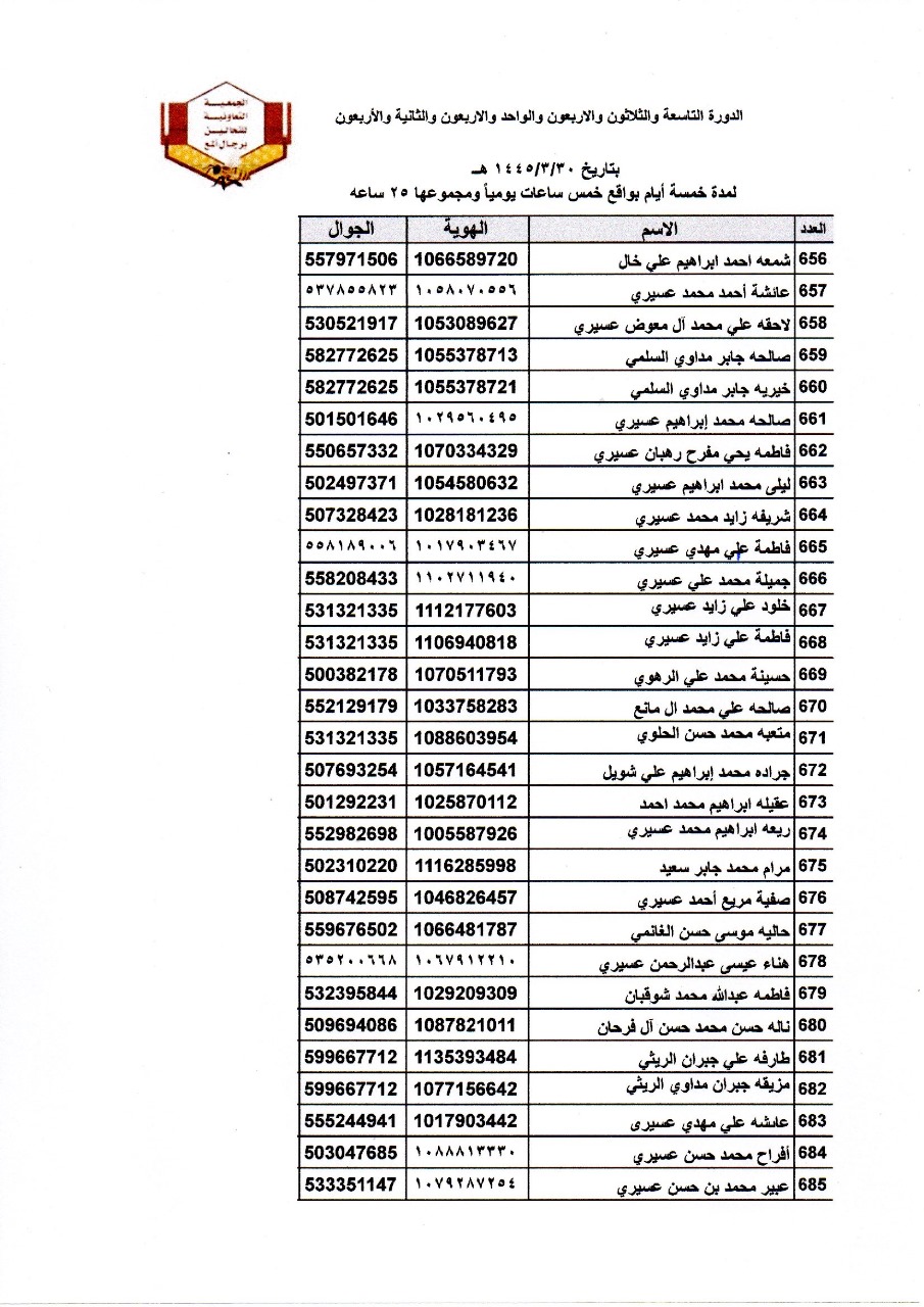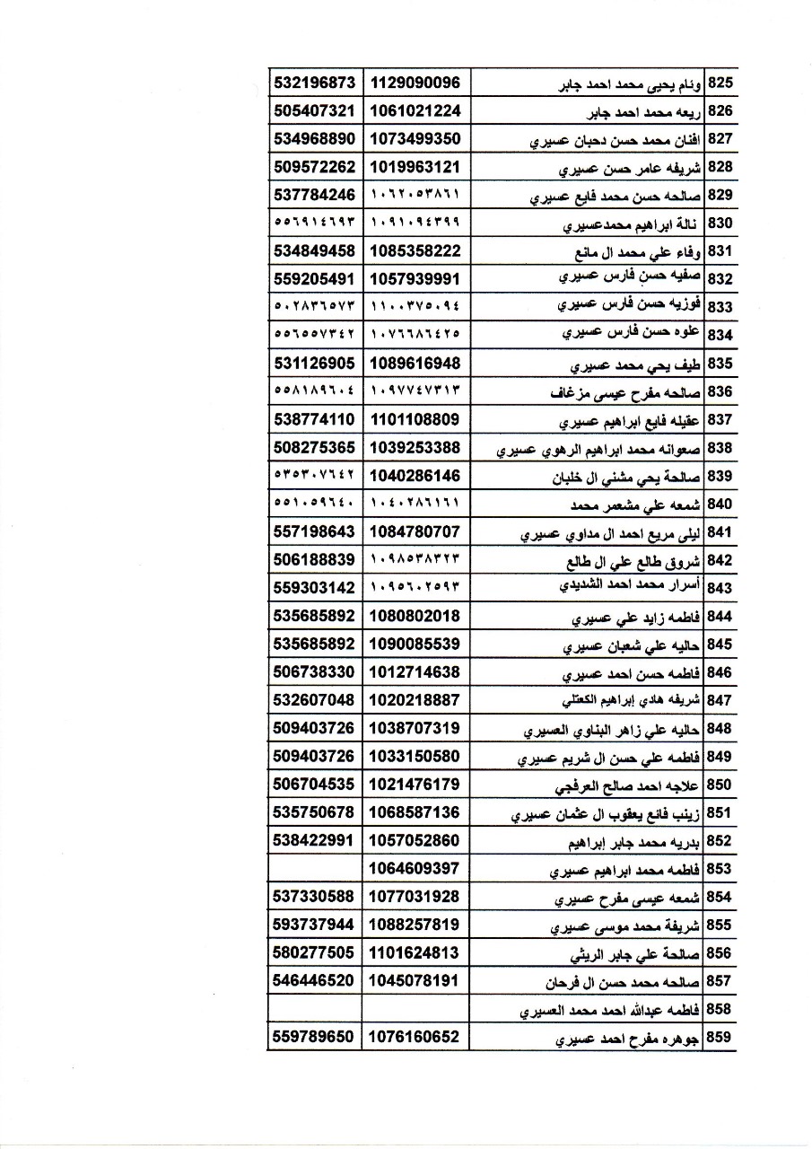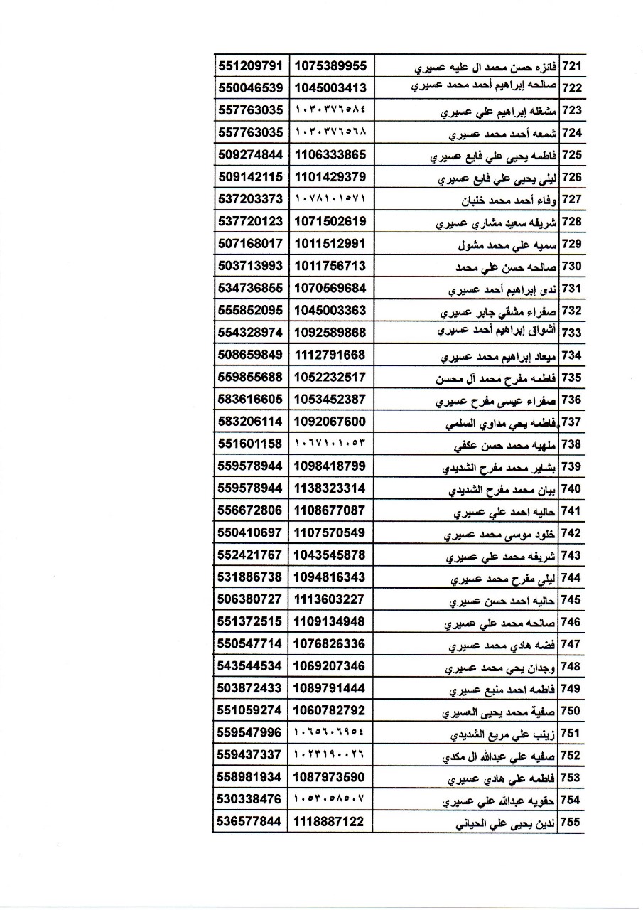 أسماء المتدربات في دورة اساسيات تربية النحل تحت اشراف فرع وزارة البيئة والمياه والزراعة بمنطقة عسير.
