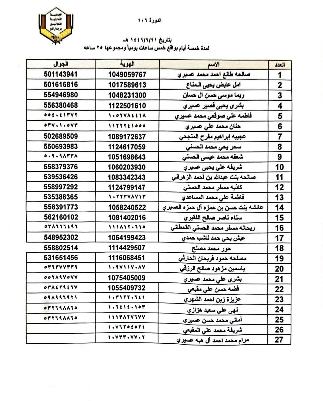 افتراضي اسماء المتدربات في دورة اساسيات تربية النحل رقم 106