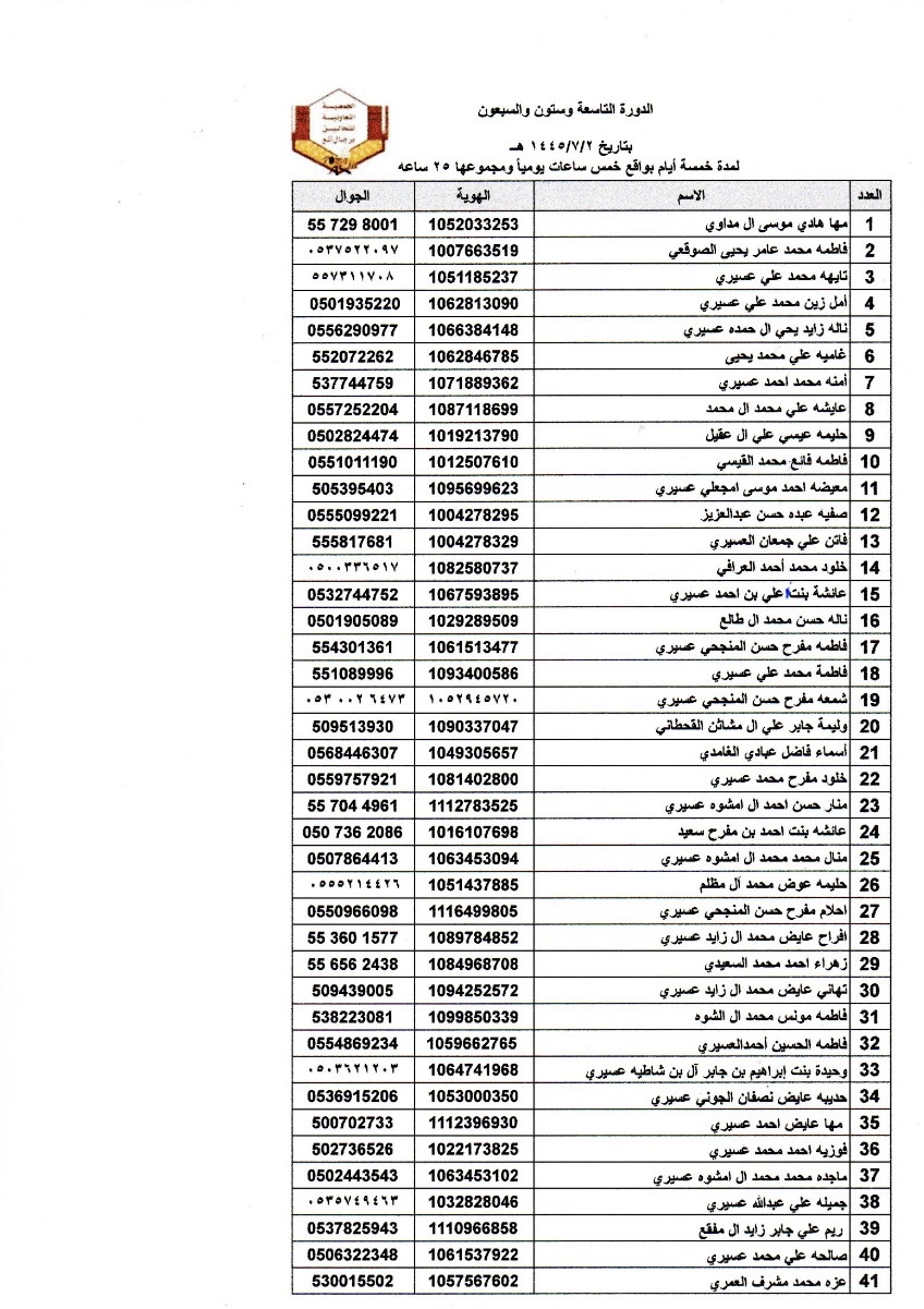 افتراضي اسماء المتدربات في دورة اساسيات تربية النحل للنساء رقم 70و71