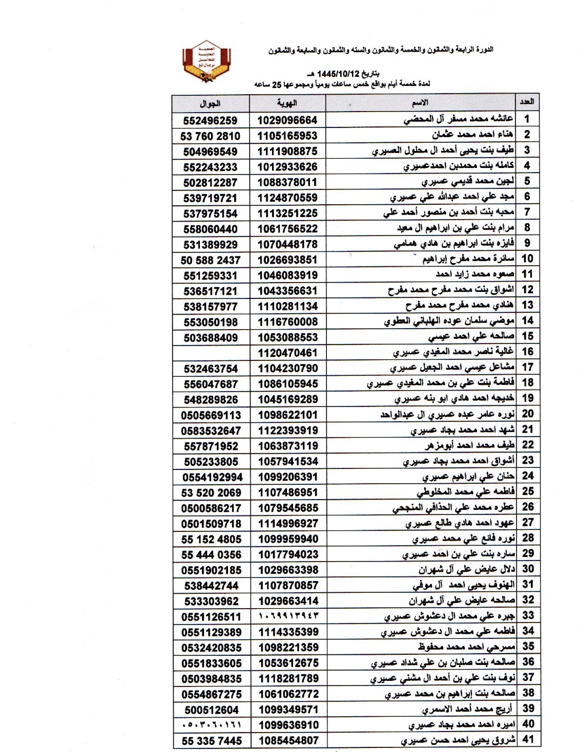افتراضي اسماء المتدربات في دورة اساسيات تربية النحل رقم 84 و 85 و 86 و 87