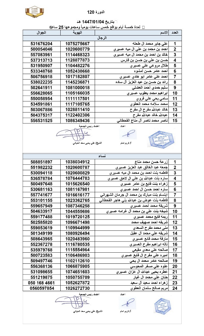 افتراضي اسماء المتدربين والمتدربات في دورة اساسيات تربية النحل رقم 120