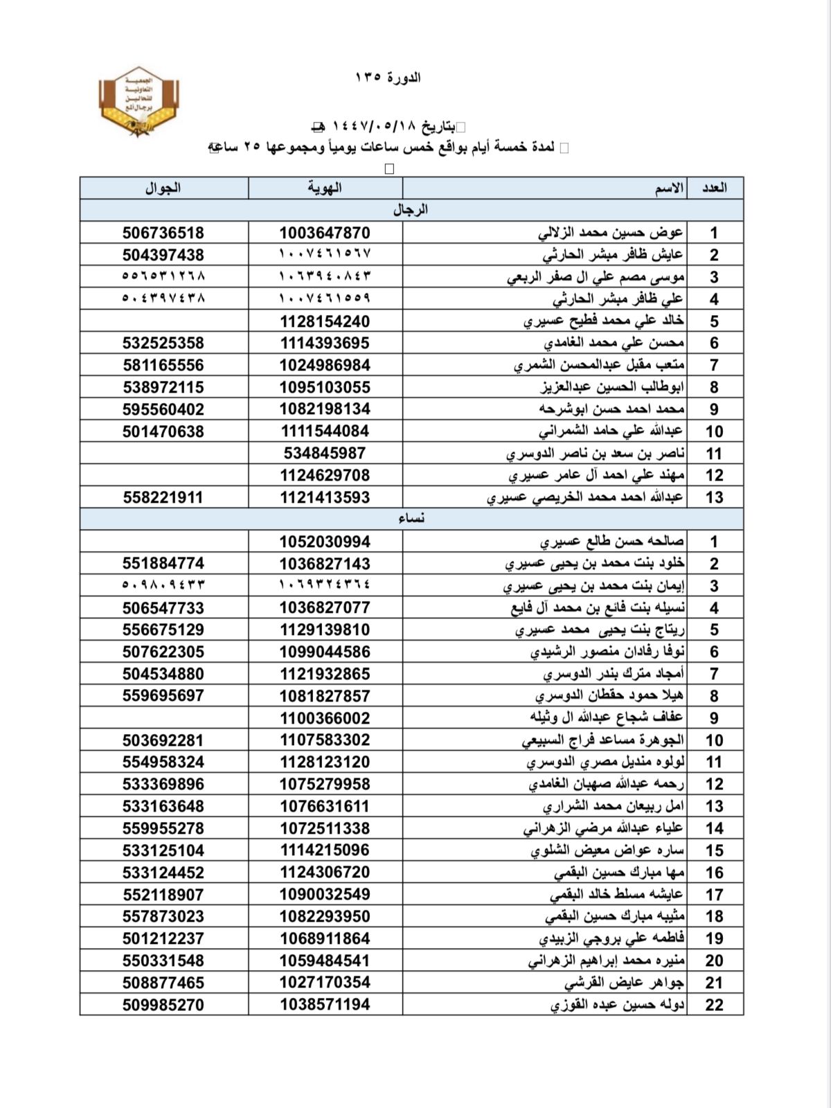 افتراضي أسمآء المتدربين والمتدربات في دورة اساسيات تربية النحل رقم 135